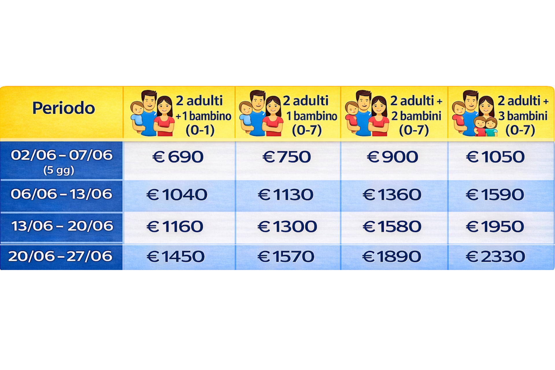 OFFERTA GIUGNO  –  a partire da 690€ a settimana in pensione completa